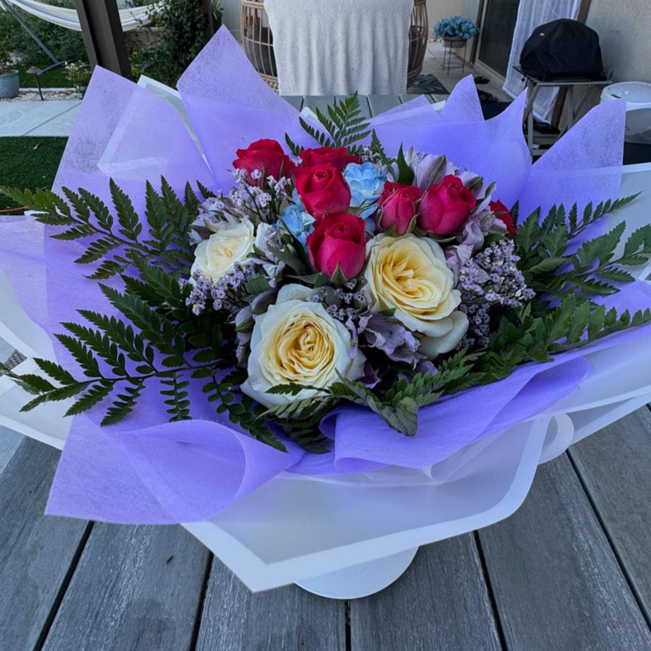 Inspired by October’s birthstones - opal and pink tourmaline; this bouquet glows with layers of luminous pastels and vibrant jewel tones. Wrapped in lilac and white for a radiant finish, it captures the iridescent beauty of opal alongside the romantic warmth of tourmaline. A design full of elegance, depth, and a touch of magic.